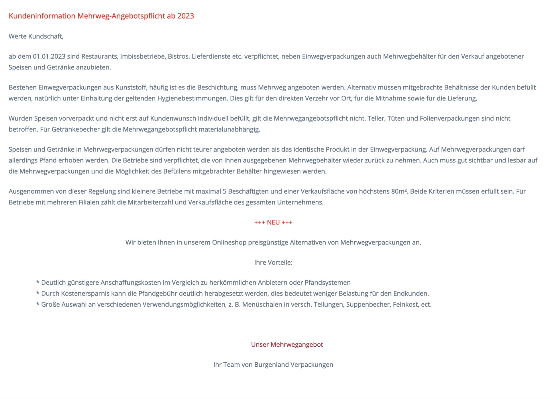 JETZT mit MEHRWEG-ZERTIFIZIERUNG !!!