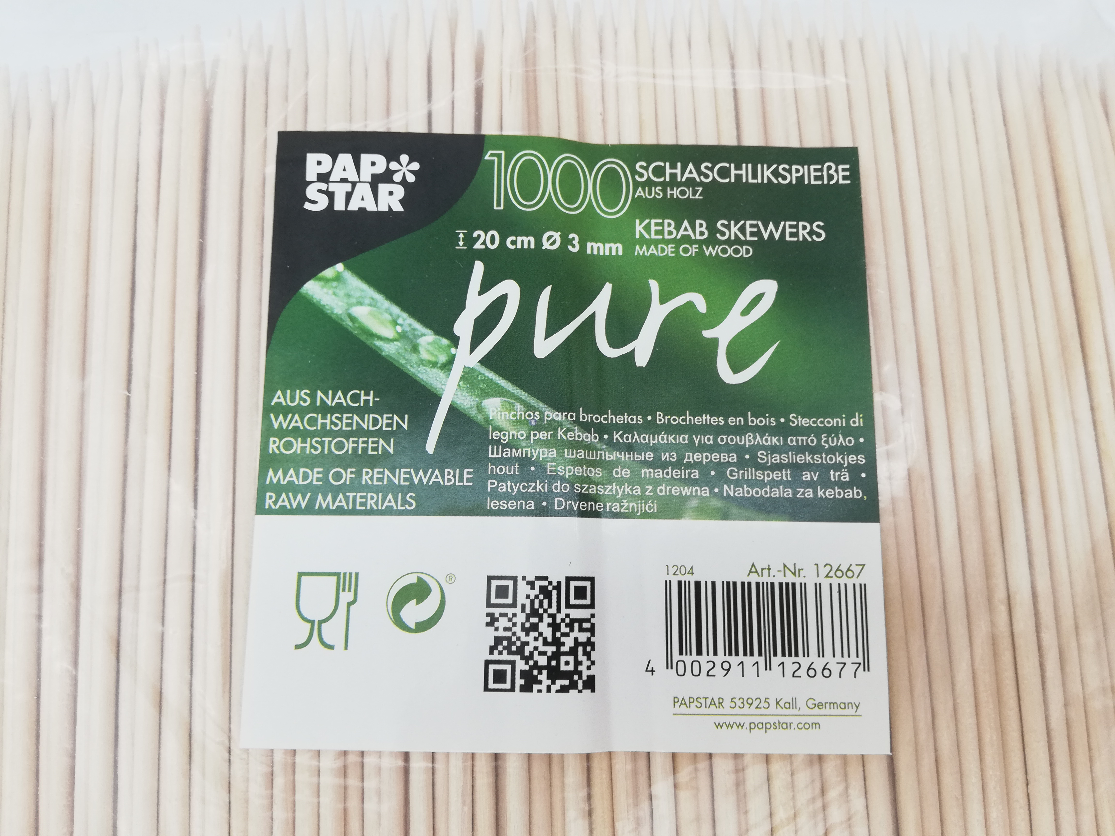 "Schaschlik-Spieße 20cm/3mm, Holz, 1000 Stück/Packung"