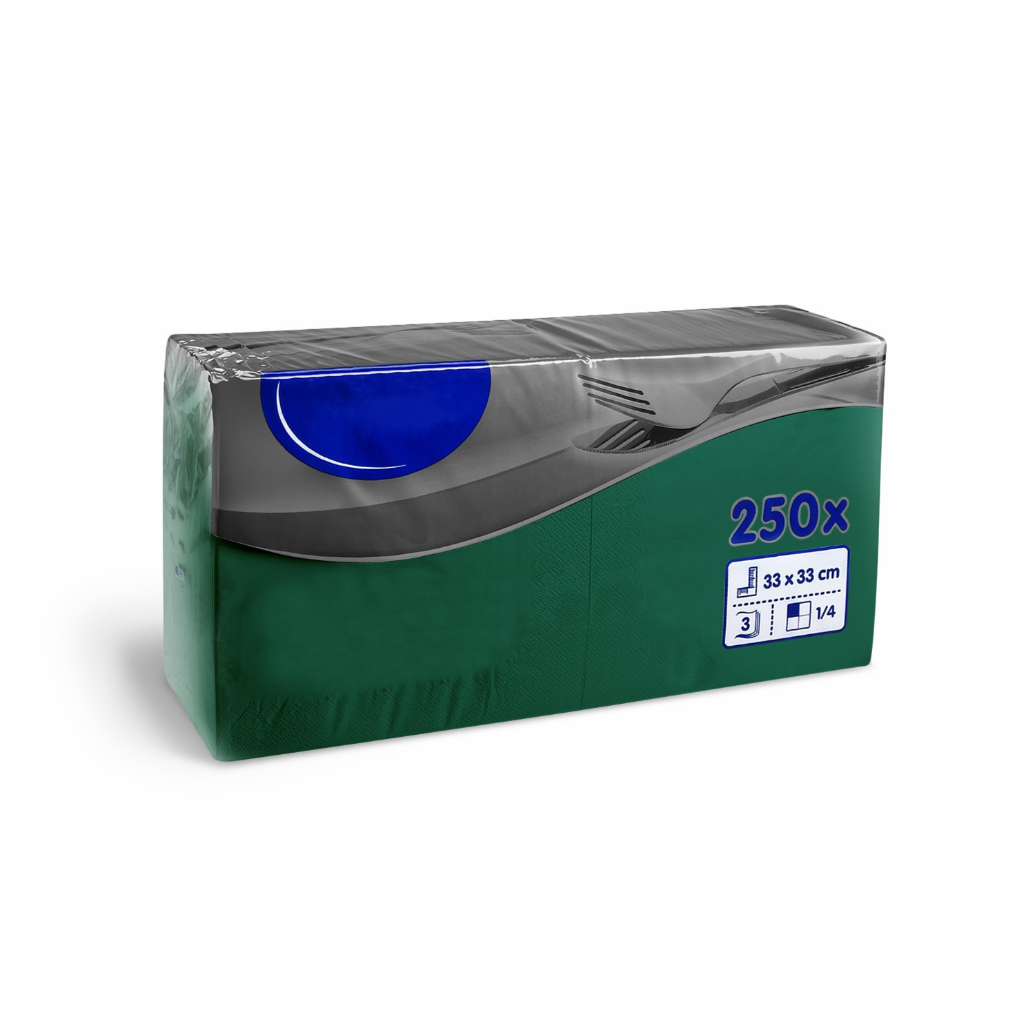 Servietten 33x33cm, 3-lagig, 1/4-Falz, dunkelgrün, (6x250) 1500 Stück/Karton