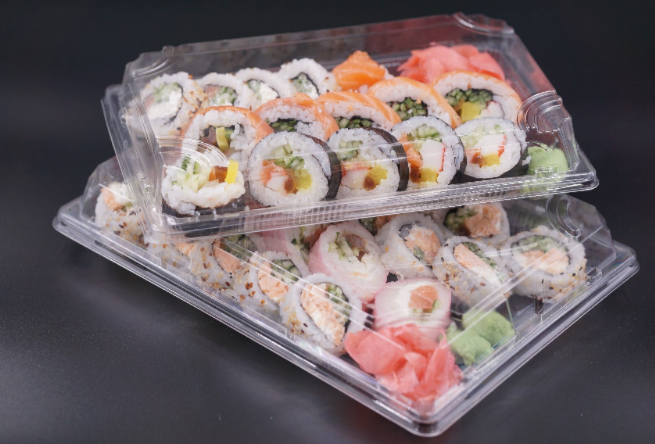 - Kombipack! Schwarze Sushi-Schale S9/T45 mit klarem Deckel (Anti-Fog-Beschichtung)