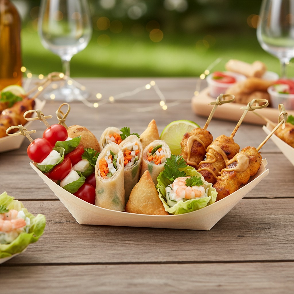 Die Bio Holzschiffchen bestehen aus umweltfreundlichem Material und sind daher vollständig kompostierbar. Das Holz der Schiffchen ist extrem dünn gearbeitet, daher sind die Bio-Schälchen sehr leicht und angenehm in der Hand zu halten. Die natürliche Maserung und die Form eines Bootes bieten eine besondere Möglichkeit ihre Speisen zu präsentieren.