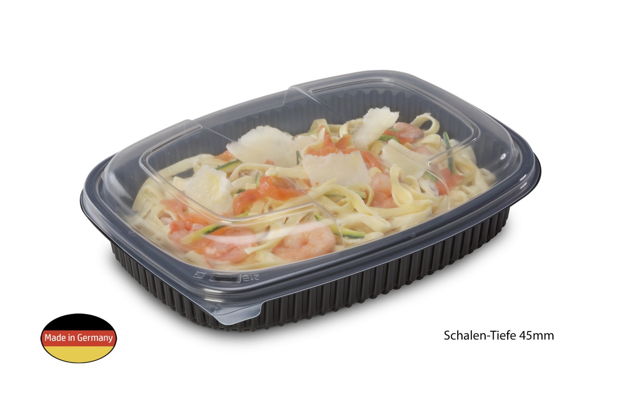 Die Schalen gibt es ungeteilt, 2-geteilt und 3-geteilt, somit steht für alle Speisen die optimale Verpackung zur Verfügung.
