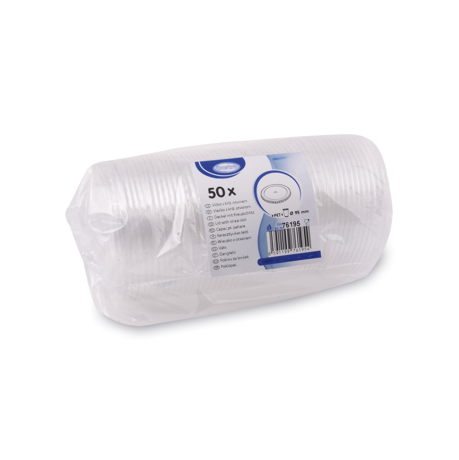 rPET Flachdeckel MIT Kreuzschlitz für ClearCup (50 Stück/Packung)